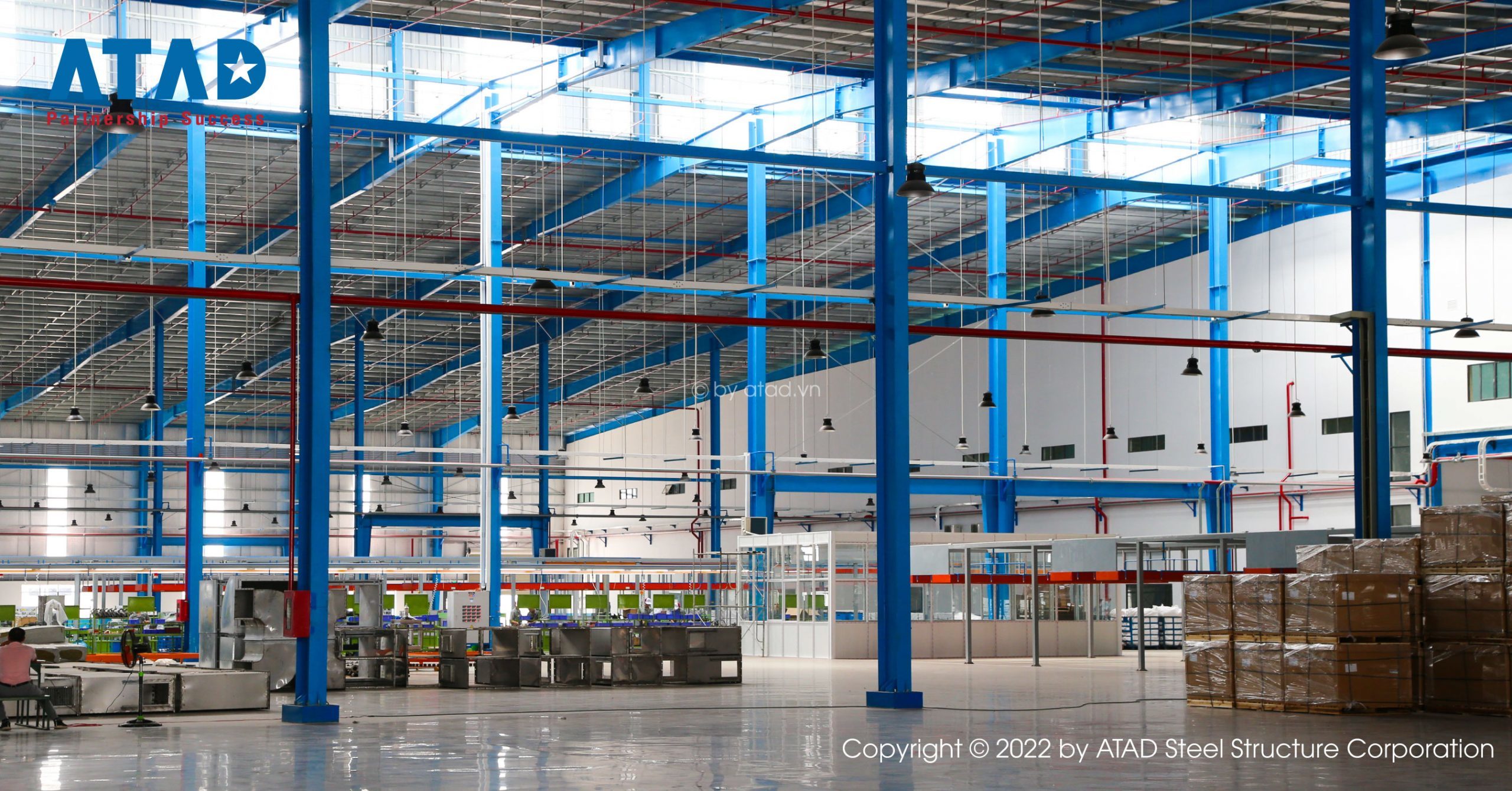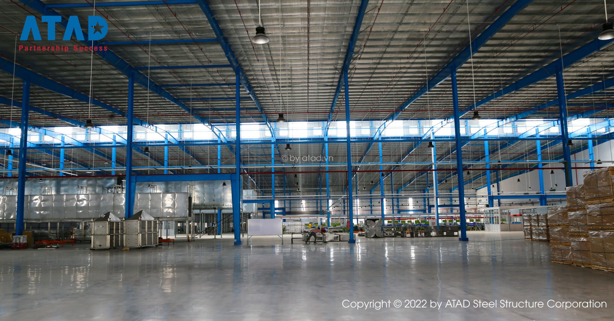 Το υπόστεγο επεξεργασίας ράβδων χάλυβα στο έργο είναι μια αποθήκη χάλυβα που κατασκευάστηκε από την GST.